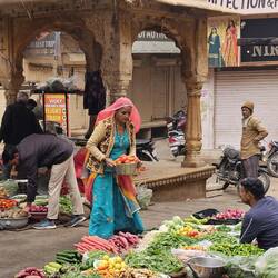 Weiter geht es in der Wüstenstadt Bikaner zu Fuß. Wir laufen durch die kleine Altstadt und hier herrscht ein wirklich buntes Treiben und ich liebe es, mitten in solch einem Gewusel zu sein.