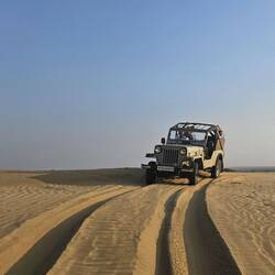 Nach dem Frühstück nehmen wir die nächste Etappe in Angriff, wir fahren weiter in die Wüste Thar hinein, um dort die Nacht im Dhora Desert Resort & Spa zu verbringen, einem Ort zum Träumen undLæs mere