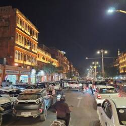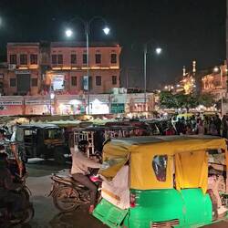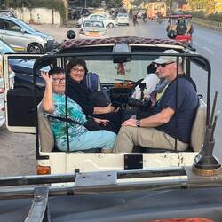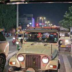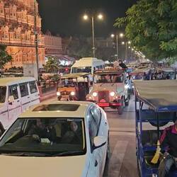 Gestern hat uns unser Reiseleiter gefragt, ob wir Interesse an einer abendlichen Jeeptour durch Jaipur hätten, um die Stadt im Lichtermeer zu sehen und so werden wir jetzt von drei Jeeps abgeholt.Læs mere