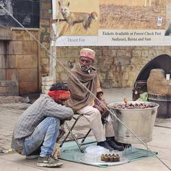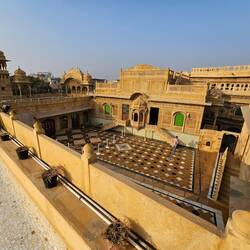 Nach einer Erkundungstour durch das Hotel, genieße ich das wirklich fantastische Frühstück, bevor es schon wieder weitergeht in die goldene Stadt Jaisalmer, die ebenfalls in der Wüste Thar liegt.Læs mere