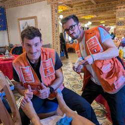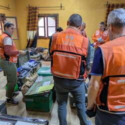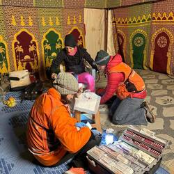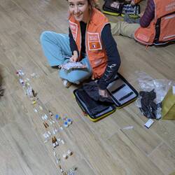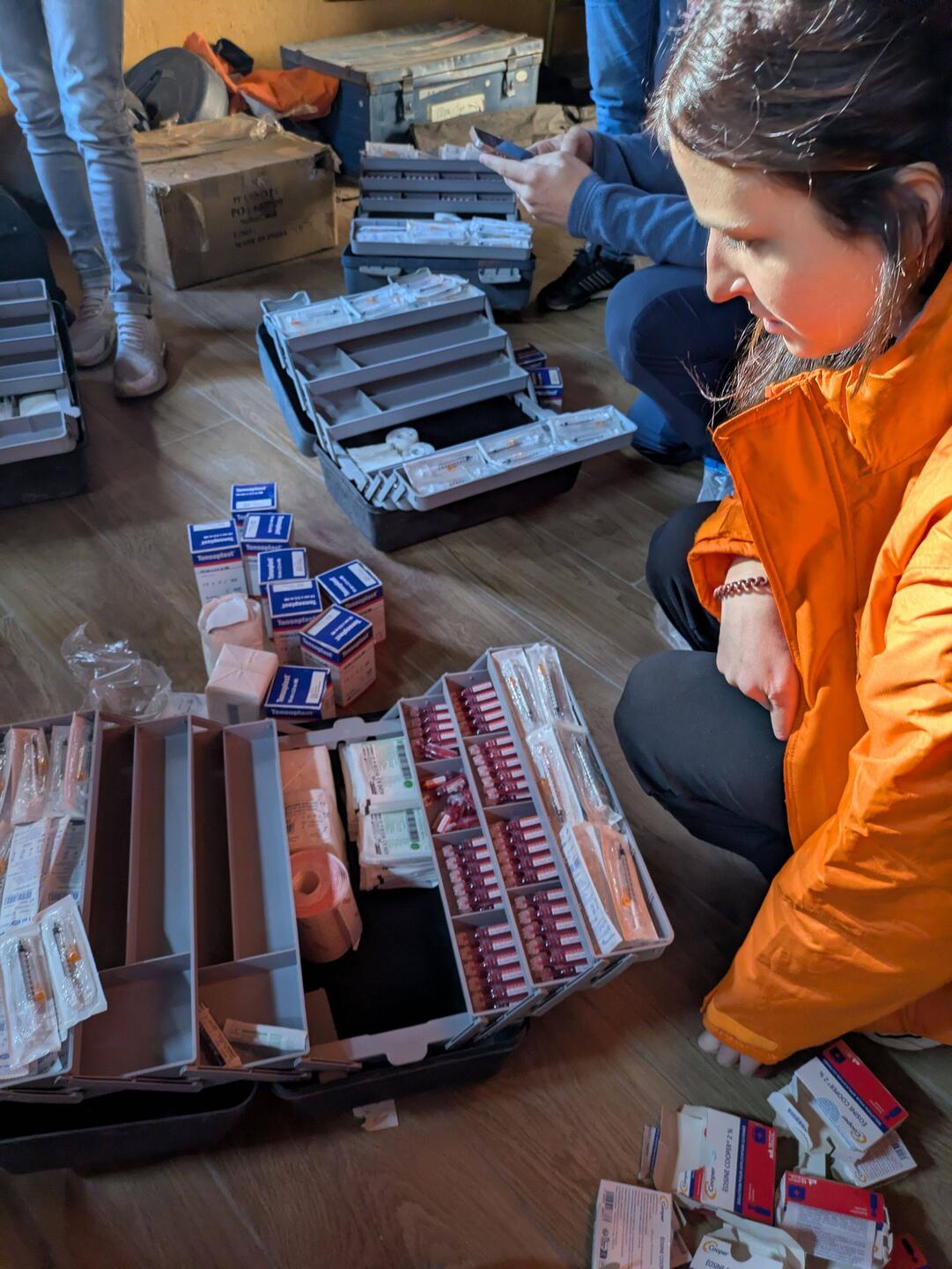 Ce matin on a fini de faire les sacs et les caisses podologues pour soigner les ampoules.