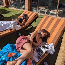 Avec Cécilia on a passé un petit moment hier soir sur la terrasse au couché de soleil, on a discuté et refait le monde, c'était génial.