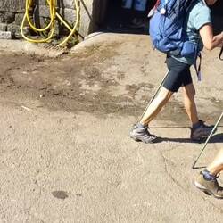 The first couple of hours today was a long and very steep continuing climb. It seemed to go on forever. Especially hard walking in the dark. Then it was pleasant, then back to climbing up and down. We did have another bad patch of climbing down flat steep rocks steps , but we made it.