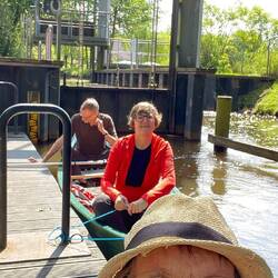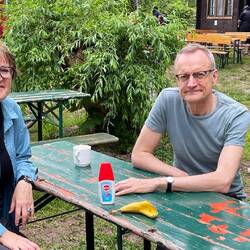 Ruth und ich reisen per Auto mit den Fahrrädern auf dem Gepäckträger im Spreewald an, Thomas kommt aus Köln per Zug bis nach Vetschau, von dort muss er das letzte Stück bis nach Burg noch mitLue lisää