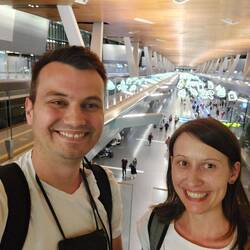 In Wien mussten wir nach dem Boarden im Flieger wegen dem Wetter den Start um ca 1 Stunde verspätet antreten. In Doha haben wir aber dennoch gut Zeit bis zum nächsten Weiterflug Richtung KualaLæs mere