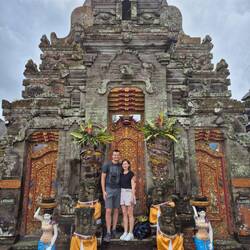 Heute stand der Transfer nach Lovina an. Auf dem Weg dorthin haben wir einige Sightseeing-Destinationen aufgesucht. Da wir mit vollem Gepäck unterwegs waren, mussten wir eine Lösung für unserLæs mere