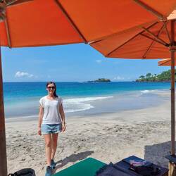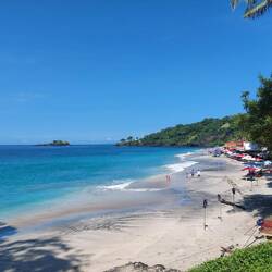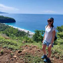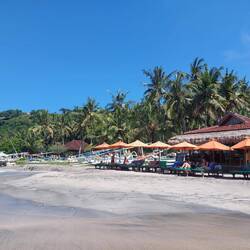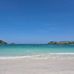 Da wieder ein schöner Tag angesagt war, entschieden wir uns, nochmals zum Strand zu fahren, da dieser uns so gut gefallen hat. Wir wanderten auch zum Aussichtspunkt Bukit Merese mit 360° Ausblick.Læs mere