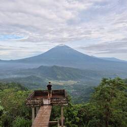 War etwas den Hügel rauf mit Blick auf den Mount Agung, dem größtenLæs mere