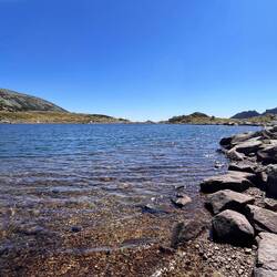 Angekommen am Bucura See eröffnet sich einem ein toller Anblick. Es ist der größte Gletschersee Rumäniens, liegt auf 2040m Höhe und ist 550m lang und an der tiefsten Stelle ist er etwa 15m tief.Baca lagi