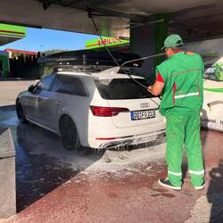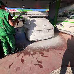 Da mein Auto in den Parks sowas von verstaubt war, musste es mal eine Wäsche bekommen. Der nette Man von der Tankstelle hat mir auch direkt geholfen und das Auto für mich gewaschen. Manchmal hilftLæs mere