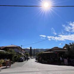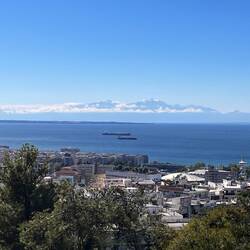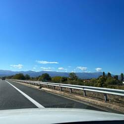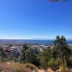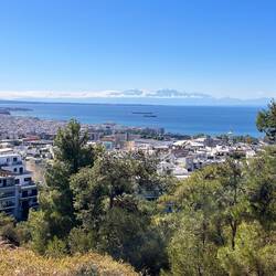 Da es heute viel weniger Wolken gab, konnte man in der Ferne den Berg Olymp sehen mit seiner noch etwas weißen Kuppe. 🏔️ Daher wollte ich mir den Ausblick von gestern, diesmal klar mit dem BergBaca lagi