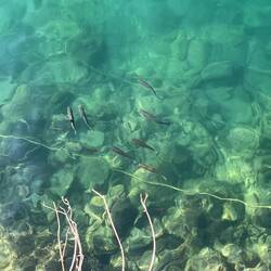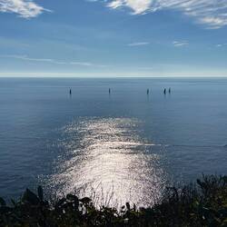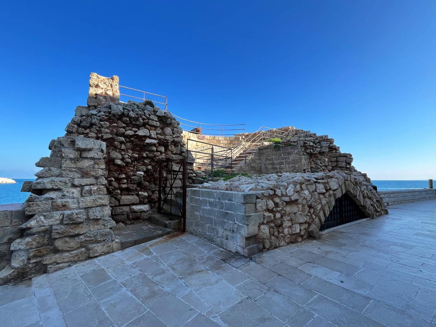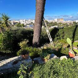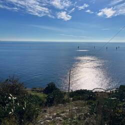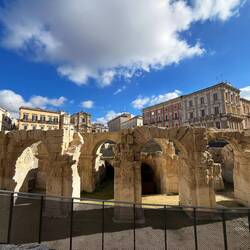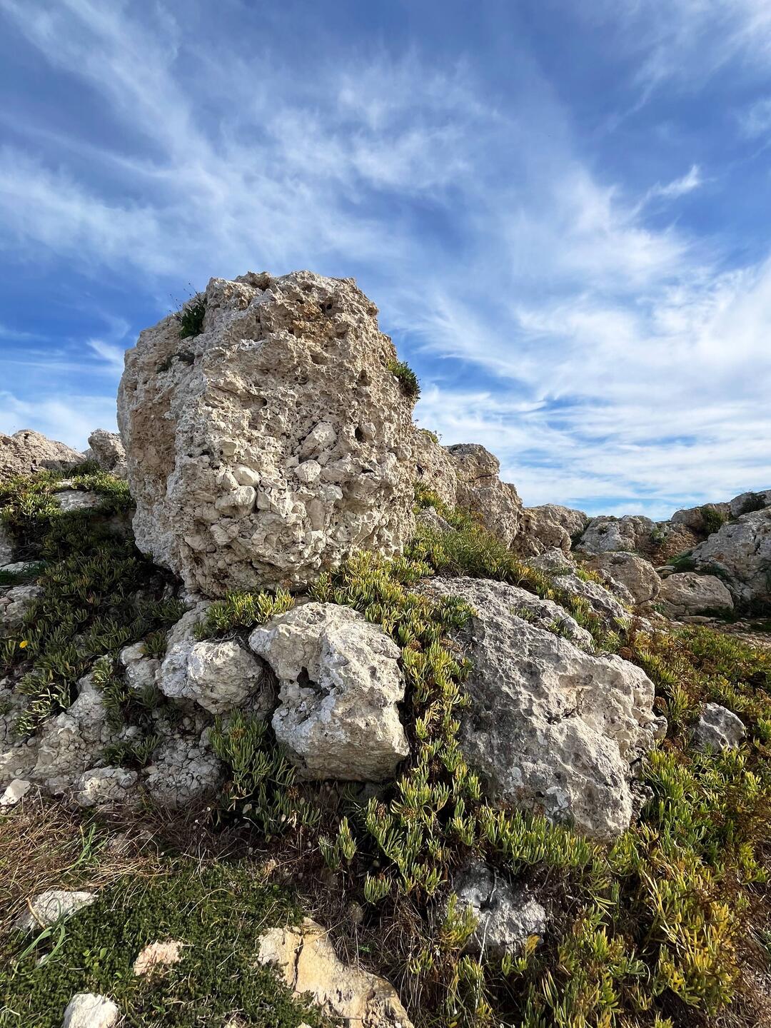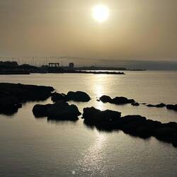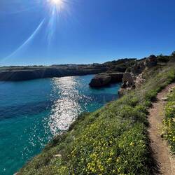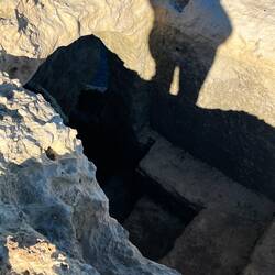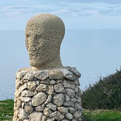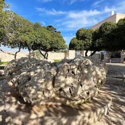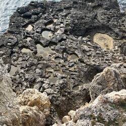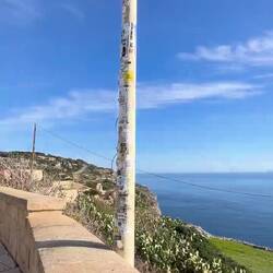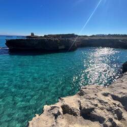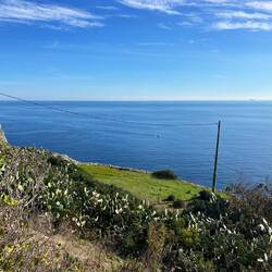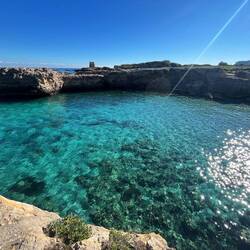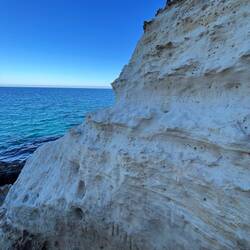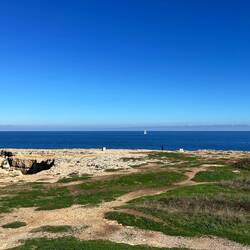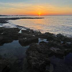 Wenn man aus Roca in Richtung des “poet caves” läuft, kommt man an einigen Ausgrabungsstätten vorbei (diese waren aber zu der Zeit nicht begehbar) und auf dem Gelände des “cave of poetry” gibt es weitere Ausgrabungen und eine Madonnen Figur die über das Meer blickt. Die Höhle an sich ist recht schön und der Klang darin ist toll aber das war es dann auch schon. Die Felsen drumherum sind unheimlich schroff und scharfkantig, eine bizarre Landschaft. Nach meinem Besuch da, ging es nach Roca zurück um eine Runde schwimmen zu gehen. Die Einheimischen teilten mir mit Händen und Füßen mit, das die Eisenleiter nicht mehr begehbar ist und das man an der Seite über die Steine ins Wasser hinabsteigen müsse. Gesagt getan, habe ich mich auf den stufenartigen Einstieg gesetzt, und geschaut wie ich mich am besten ins Wasser hinablassen konnte ohne direkt auf den Boden zu treten, da ich nicht sehen konnte ob es zwischen den Steinen Seeigel gab. Auf einmal zog etwas an meinem linken Fußgelenk. Ich dachte erst, es war wie eine Schlingpflanze oder so was aber als ich meinen Fuß hochzog, sah ich die kleinen Tentakeln die um meine Fesselgeschlungen waren, ich quiekte kurz und schüttelte den kleinen Oktopus mit ganzer Kraft von meinem Fuß. 😳😂 Ich war kurz perplex, einer der Männer kam um zu schauen ob alles ok war, ich zeigte auf meinen Fuß und sagte nur “polpo” er lachte und meinte dann, ich sollte mich einfach nach vorne fallen lassen (zumindest habe ich seine Worte und Gesten so gedeutet). Gesagt getan und ich war im Wasser, nicht sehr elegant 😅 aber ich war drin. Ich schwamm eine Runde aber das mit dem Oktopus hatte mich etwas verwirrt. Als ich wieder raus kam, kam der Mann um die Ecke um zu schauen ob ich Hilfe beim heraussteigen brauchte, hab ich aber hin bekommen und dann fasste er sich auch ans Fußgelenk und sagte etwas mit “polpo” im Sinne von ihm sei das eher auch passiert. Ich bin direkt noch mal zum Auto gegangen um meine Taucherbrille und Flossen zu holen aber im Wasser habe ich ihn nicht noch mal gesehen. Er wird sich wohl zwischen den Steinen versteckt haben. Dafür bi. Ich noch durch eine Höhle getaucht und es gab auch einige hübsche Fische. Nach dem Ereignis ging es weiter zum Sant’Andreas Tor, auch eine Steinformation mit einem etwas weicherem Stein, die wie ein Tor aussieht. Alles in allem, eine sehr schöne Umgebung.もっと詳しく