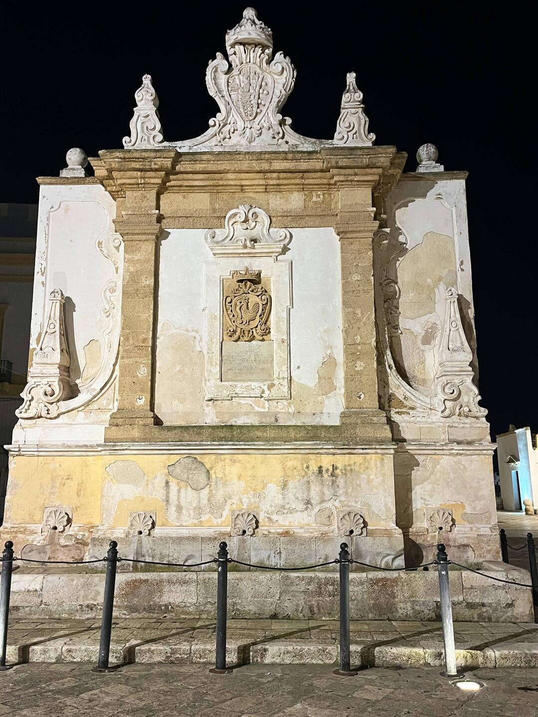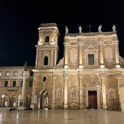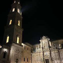 Der Barock von Lecce wird als Lecceser Barock bezeichnet und hat sich im 17. und 18. Jahrhundert aus dem europäischen Barock entwickelt. Das überwiegend lokale Tuffstein welcher zum Bau der Gebäude zum Einsatz kam, ist recht weich und hat sich daher gut für Schnitzereien und Verzierungen verwenden lassen und er verleiht den Gebäuden ihre gelbliche Farbe. In den Kirchen gibt es außerdem sehr viele Pappmaché-Figuren (aus Draht, Stroh und Papier), welche zur Verzierung verwendet werden. Auch für das Handwerk ist Lecce bekannt und man kann heute noch zuschauen wie die Figuren angefertigt werden. Da meine Tour dann doch länger gedauert hatte als gedacht, habe ich mir einen Platz für mein Auto für die Nacht gesucht und den Abend noch in der Stadt ausklingen lassen. Auch im Dunkel ist diese wunderschön anzuschauen.もっと詳しく