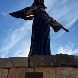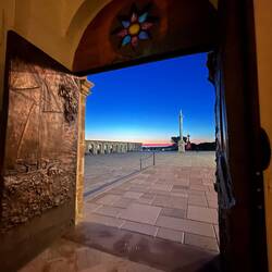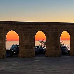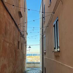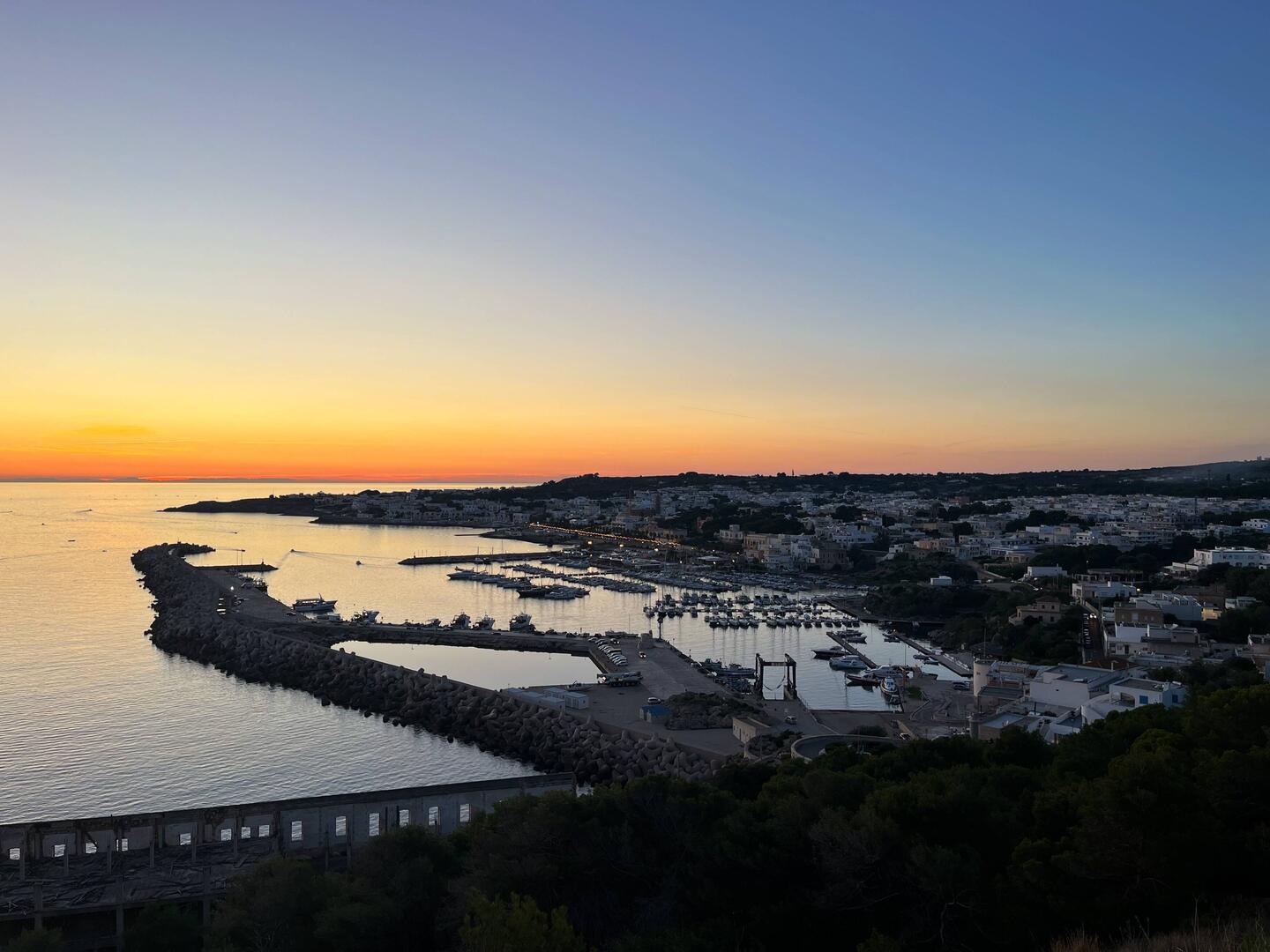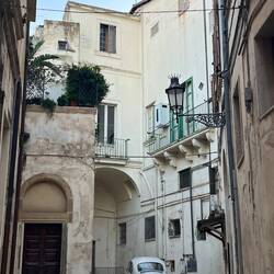 In Santa Maria di Leuca bin ich gerade noch rechtzeitig zum Sonnenuntergang angekommen. Es war ein grandioses Spiel der Farben und es war sehr anmutend. Oben auf dem Punkt gab es ein Kloster und einen Leuchtturm. Die Kirchenglocken ertönten und es war ein merkwürdiger Moment der in mir eine eigenartige Ruhe und Zufriedenheit auslöste, ich hatte ja früh schon den emotionalen Moment auf dem Friedhof aber jetzt war es anders. Ein ganz toller Ort an dem ich auch für die Nacht bleiben wollte, da er auch Sicherheit und Ruhe ausstrahlte. Der Leuchtturm war ebenfalls imposant mit seiner Höhe. Wann kann man schon mal zwischen einem Kloster und einem Leuchtturm umgeben von “zwei” Meeren übernachten? 😊 Von da oben hatte man auch einen tollen Blick über die kleine Hafenstadt. Ich habe mir such das Kloster angeschaut, es fand gerade das Abend Gebet der Nonnen, due dort leben statt (es waren nur vier oder fünf). Auf einmal kam die oberste von vorne auf mich zu (nicht gestürmt aber mit energiereichem Schritt) und ich dachte direkt ich bekomme jetzt erstmal für etwas eine Abmahnung. Aber ganz im Gegenteil, die fragte erst auf Italienisch ob ich italienisch spreche, ich schüttelte mit dem Kopf, dann fragte sue ob ich englisch spreche was ich bejahen konnte. Und dann drückte Sie mir ihr Telefon in die Hand und fragte ob ich ein Bild in der Tür mit den bunten Sternen oben drüber und dem tollen Sonnenuntergang im Hintergrund machen könnte? Ich war gleich ganz ehrfürchtig und fast sprachlos. Damit hatte ich ja nun nicht gerechnet aber sie hat das Bild auch direkt mit einer Sprachnachricht a wen verschickt. Über die Bitte und die “Fortschrittlichkeit” war ich überrascht. 🫣🤭もっと詳しく