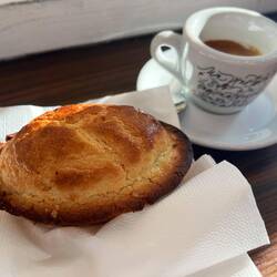 Nach einer sehr ruhigen und doch kurzen Nacht, habe ich dem Café neben dem Kloster einen guten Espresso getrunken und eines der kleine süßen Teilchen gegessen.