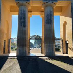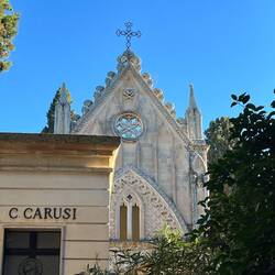 Für manche mag es etwas komisch klingen, aber als ich früh aufgestanden bin war ich schnell einen Café trinken und eine kleine lokale Süßspeise essen, ein Pasticciotto und danach habe ich mir den großen Städtischen Friedhof von Lecce angeschaut. Die große Kolonnade am Eingang und die lange Alle mir Bäumen hat bereits am Vortag mein Interesse geweckt. Ich wollte mich gerne etwas umschauen, lief sie Alle entlang und kam zu einer Kirche. Ich ging vorbei an der Kirche und mein Blick viel direkt auf die Gruften und Mausoleen. Es war eine angenehme Stille zu spüren und der Ort hat mich sehr emotional gemacht. Es herrschte ein angenehmes Licht und die Vielzahl der alten Gruften und Mausoleen war beeindruckend. Jede für sich wie ein kleiner Tempel oder eigene kleine Kapelle. Einige hatten Buntglas, durch welches sich das Licht der Sonne in bunten Farben spiegelte. Ein sehr interessanter Ort.もっと詳しく