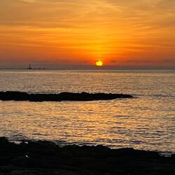 So langsam waren auch schon die Sterne zu sehen, es war ein ganz klarer und toller Sternenhimmel. Da es noch nicht so spät war bin ich noch über die bunten Treppen hinunter in den Ort gelaufen und habe mir noch ein Plätzchen zum Essen gesucht. Das war nicht so einfach, da auch hier kaum noch ein Restaurant offen hatte aber ich bin fündig geworden in einen kleinen hübschen Fischlokal. Das Essen war sehr lecker und der Wein auch sehr gut. Außer mir war noch ein Ehepaar in dem Lokal und am Akzent konnte ich hören, dass die beiden aus Österreich kamen. Ich fragte direkt, ob die beiden ebenfalls oben am Leuchtturm stehen (man erkennt mittlerweile gut an der Art wie sich Menschen kleiden, dass sie ebenfalls campen 😂), da außer mir noch ein Fahrzeug aus Österreich da stand. Es waren aber nicht die beiden, die waren mit einem WoMo da, standen aber auf der anderen Seite der Stadt, etwa 2km entfernt. Wir haben uns gut unterhalten und dann waren die beiden soweit, dass sie zahlen wollten und stellten schnell fest, dass sie nicht genug Bargeld dabei hatten und auch die Geldbörse mit der Karte nicht am Manne war. Ihnen fehlten um die 20€ von dem was ich aus dem Gespräch mitbekam. Ich fragte ob Sie Paypal haben, der Mann meinte ja aber noch nie wirklich genutzt. Ich schlug vor ihnen das Bargeld zu geben wenn Sie mir den Betrag einfach bei Paypal überweisen. Das Telefon hatten Sie ja dabei. Sie waren ganz begeistert, Johann hat direkt seinen Account aktiviert und wollte auch erst den Betrag überweisen bevor ich ihm das Geld gab. Es hat alles funktioniert und zum Dank haben Sie mir noch ein Glas Wein ausgegeben und später noch einen Gruß und Dank bei Paypal hinterlassen. Und wenn ich in Salzburg bin, soll ich sie besuchen kommen. Was für ein ereignisreicher Tag das war. Ich freue mich immer, wenn ich so schöne Momente erleben darf und so nette Menschen kennenlerne.