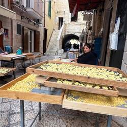 Aus Apulien stammt eine Art Pasta Orecchiette, was so viel wie “kleine Ohren” bedeutet und in Bari kann man Frauen, vor allem in einer Straße sitzen sehen und ihnen bei der Herstellung dieser zuRead more