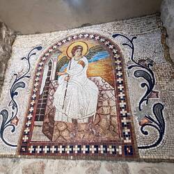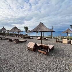 Monastery on an island and beach after