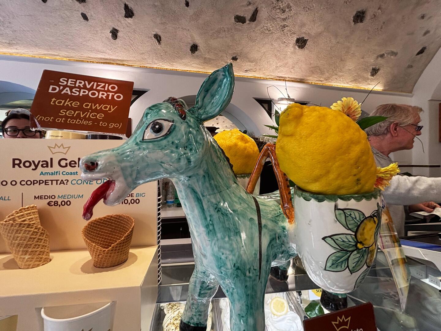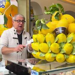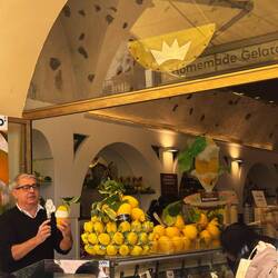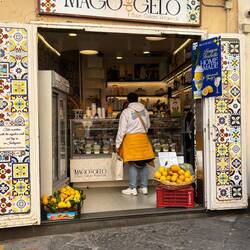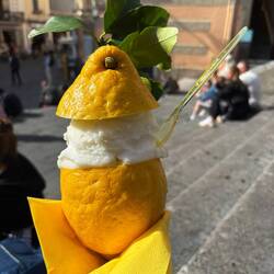 Da ich bereits überall Leute mit Eis und Sorbet gesehen habe, konnte ich es mir nicht nehmen lassen, mir auch so eine Zitrone zu holen. Das Sorbet wird in einer echten Amalfizitrone 🍋 serviert und war sehr lecker. 😋 Danach ging es in Richtung Hafen zum Parkplatz zurück und weiter entlang der Küste.En savoir plus