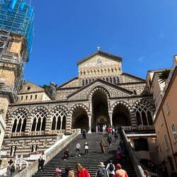 Wenn man schon mal an der Amalfiküste ist, dachte ich muss ich mir auch mal Amalfi anschauen. Es war ein schwieriges Unterfangen, einen Parkplatz zu finden. Ich will gar nicht wissen, wie es in der Hauptsaison ist! 😅 Nach langer Suche, bin ich ganz am Ende vom Ort bei zwei Jungs fündig geworden. Man muss den Schlüssel da lassen und dann sind es nur schlappe 6€/h die man bezahlen muss. Naja es blieb mir ja nichts anderes übrig, wenn ich mir den Ort anschauen wollte. Wenn man vom Hafen aus nach Almafi rein kommt, stößt man direkt auf die Stufen zum Dom. Also habe ich mir den zur angeschaut.En savoir plus