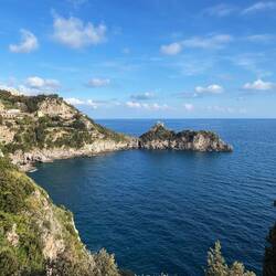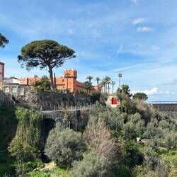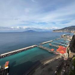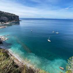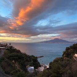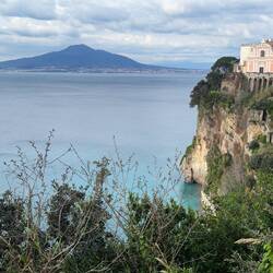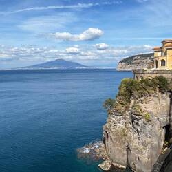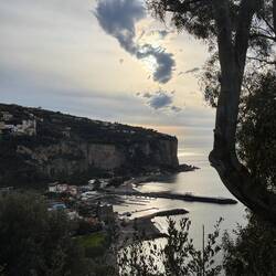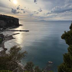 Da ich keine Lust hatte mit dem Auto rumzufahren habe ich geschaut was es noch für Möglichkeiten der Fortbewegung gibt und habe eine gute Zugverbindung in die Umgebung gefunden. Also ging es von Vico Equense mit dem Zug nach Sorrent. Ich bin einen Halt vorher ausgestiegen um noch etwas an der Küste entlang zu laufen, von hier aus hat man malerische Aussichten auch in Richtung des Vesuvs und mir nur wenig Wolken heute. 😊En savoir plus