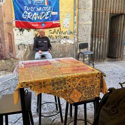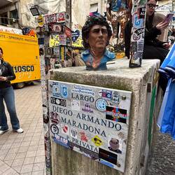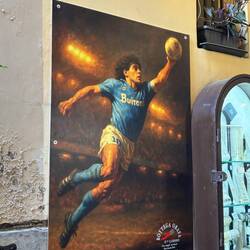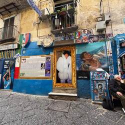Nach dem ich mich eine ganze Weile treiben lassen habe und mir gesagt wurde, wenn man in Napoli ist, muss man einmal neapolitanischen Pizza (Pizza Napoletana) gegessen haben, habe ich eine süße, kleine, sehr authentische Pizzeria gefunden. Napoletana bezeichnet die Art, wie sie gemacht wird (Teig, Form, Backzeit). Ich muss sagen, die Pizza war wirklich sehr gut und die Leute da sehr freundlich. Der Besitzer hat erkannt, dass ich Laufschuhe trug und hat mir direkt von seinen Marathon Läufen auf in Neapel erzählt. Die „Küche“ war winzig und eher nur ein Gang. Kann ich nur empfehlen, wenn man da ist. Danach ging es den Berg hinauf und vorbei an einem besonderen Viertel, in welchem Diego Maradona absolut verehrt wird und das auch sehr öffentlich gezeigt wird.En savoir plus