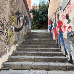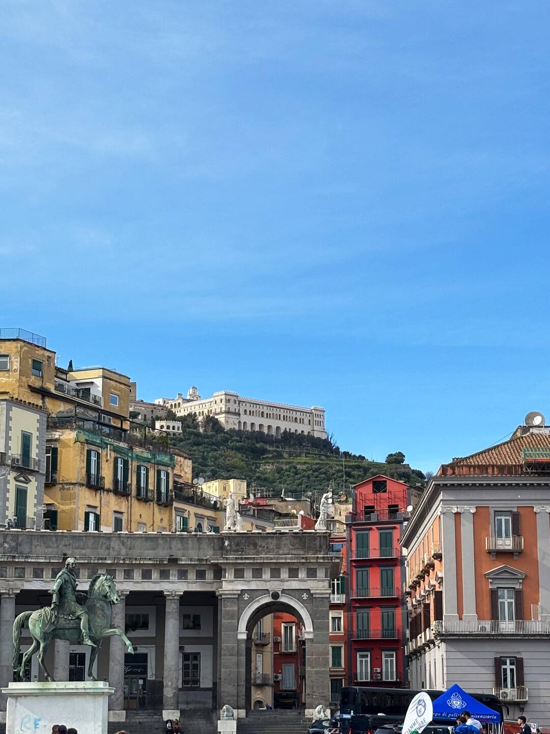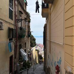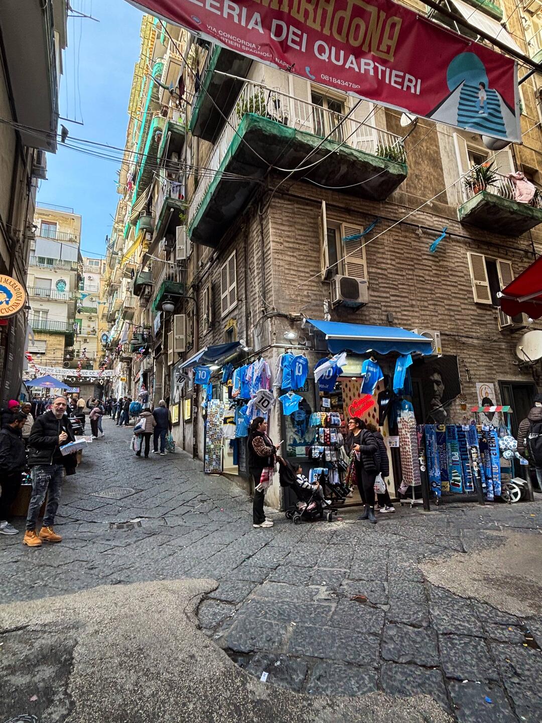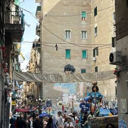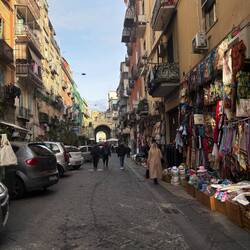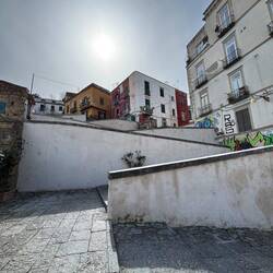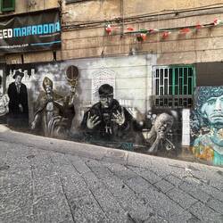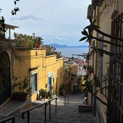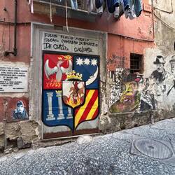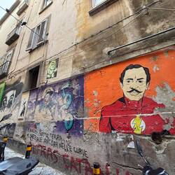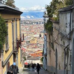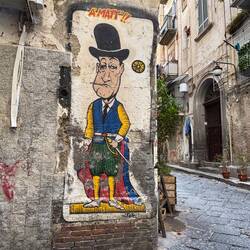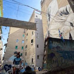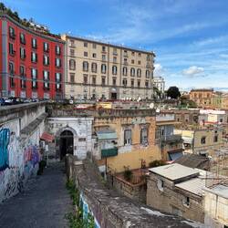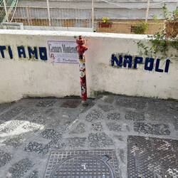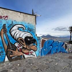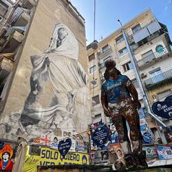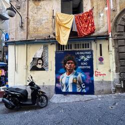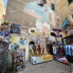 Im Quartieri Spagnoli gibt es eine Gedenkstätte für den Weltfußballer, mit einem riesigen Wandgemälde. Überall in der Umgebung gibt es Bilder und Gemälde und andere Dinge, die an ihn erinnern. Man spürt hier richtig die Leidenschaft der Menschen für den Fußball und die Legende, selbst wenn man kein Fußballfan ist. Es ist interessant zu sehen, wie er hier immer noch verehrt wird und welchen Einfluss er auf die Stadt und Menschen hatte und hat. Danach ging es weiter den Berg hinauf, um die Aussicht zu genießen.En savoir plus