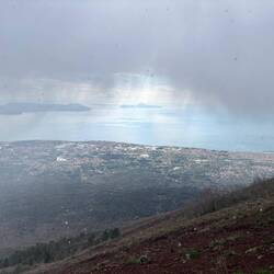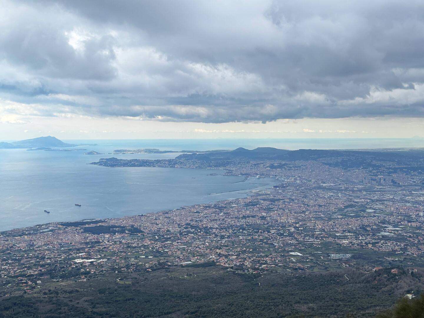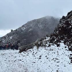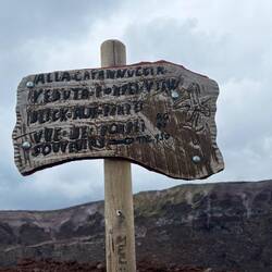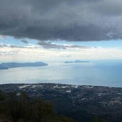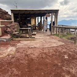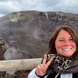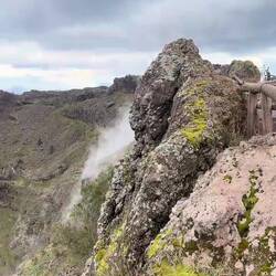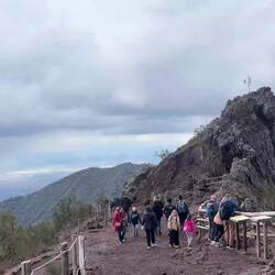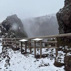 Nach dem ich eine Weile oben am Krater war und noch einen schönen Blick auf die Umgebung erhaschen konnte, dauerte es nicht lange und es zogen sich immer mehr Wolken zusammen und es war auch ordentlich kalt geworden. Am Ende des Kraters gibt es eine kleine Hütte, wo heiße Getränke verkauft werden, es gab witziger weiße auch Glühwein und ich konnte es mir nicht nehmen lassen bei der Kälte einen zu trinken. Der war auch tatsächlich sehr gut. Die Dame am Kiosk meinte es sind Null Grad und so hat es sich auch angefühlt. Sie hat mir noch gezeigt wo Pompeji genau von hier oben zu sehen ist und mit einmal fing es an zu schneien 🌨️. Nicht dass, womit ich gerechnet hatte!! Regen ja aber Schnee nicht! 😳🥶 Und es stand auch in keinem Wetterbericht irgendwas davon, nicht mal von der Kälte! Da auch die Hüttenbetreiber sichtlich überrascht waren und anfingen zu filmen, war es wohl für alle eher eine Überraschung! 😁 Vorallem für die ganzen Touristen in kurzen Hosen und ohne Jacke!! 🤭 Die eine Dame von der Hütte meinte auch, das es der erste Schnee in diesem Jahr oder um die Zeit ist.En savoir plus