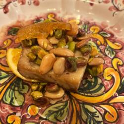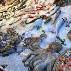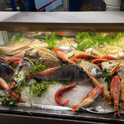 Im Hafen von Sciacca, gibt es einen ganz tolle Frischfischtheke, wo man verschiedene frische Fische und andere Meerestiere/-früschte kaufen kann, die sich direkt vor Ort filetiert oder ausgenommenLæs mere