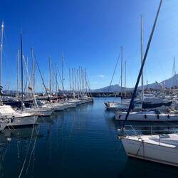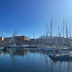 Der Hafen von Palermo hat einen älteren und einen neuen Teil. An dem neuere Hafen kommen die Kreuzfahrtschiffe an und der ältere Teil - „La Cala“ - ist der Yachthafen, er ist wie eine PromenadeLæs mere