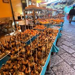 Nach dem vielen Rumlaufen am Tage waren wir abends gleich noch mal in der Osteria um die Ecke und haben beschlossen am nächsten Tag ein paar Köstlichkeiten des Capo Marktes als Frühstück zuLæs mere