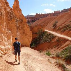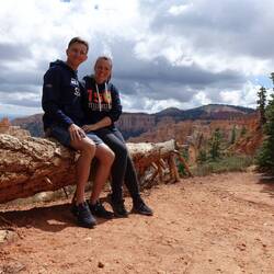 Zum Abschluss unseres Tages im Bryce Canyon hielten wir an den bekanntesten Punkten Sunrise und Sunset. Hier geht der berühmte Navajo Trail fast bis hinunter ins Tal. Ein tolles Erlebnis, welches wirBaca selengkapnya