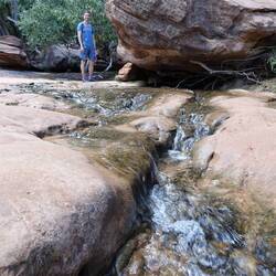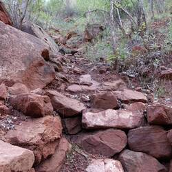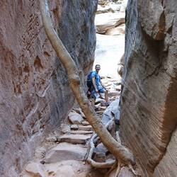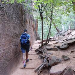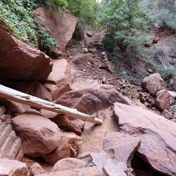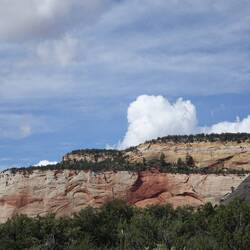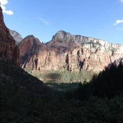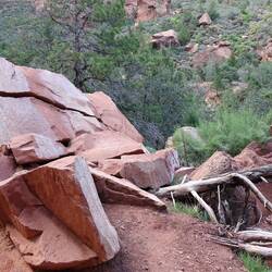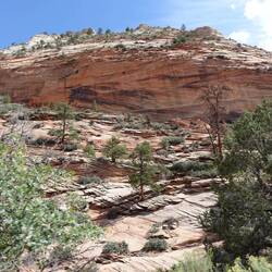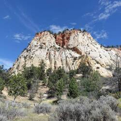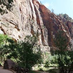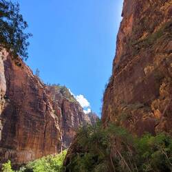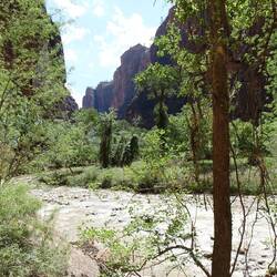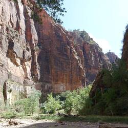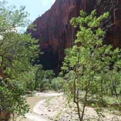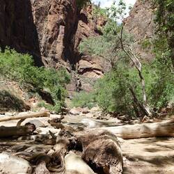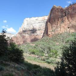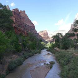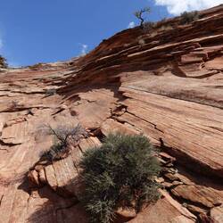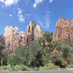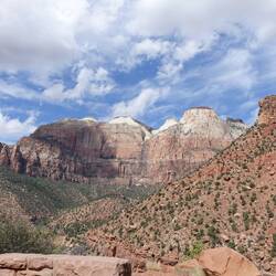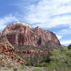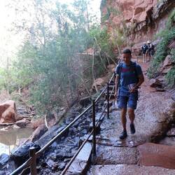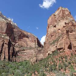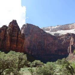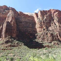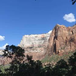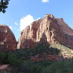 Nachdem der Riverside Walk so überlaufen war, entschieden wir uns eine kurze Wanderung zwischen zwei Busstopps einzulegen. Von The Grotto zur Zion Lodge führte ein schmaler Weg entlang der Straße.Baca selengkapnya