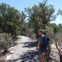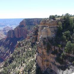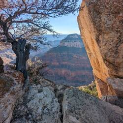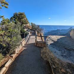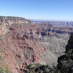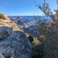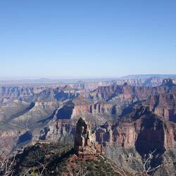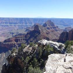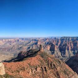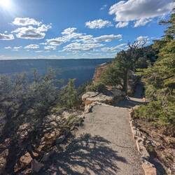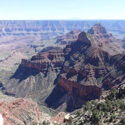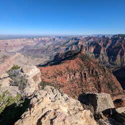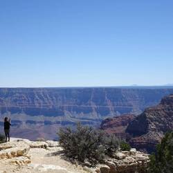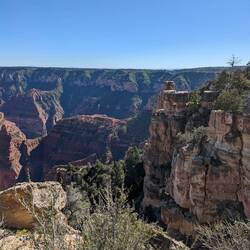 Vom Aussichtspunkt Bright Angel Point soll man, laut den Einheimischen, den besten Blick in den Grand Canyon haben. Für mich ein absolutes Must-have. Für Matthias eher ein "oh Gott". Also trenntenBaca selengkapnya
