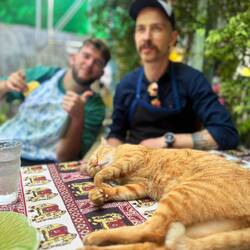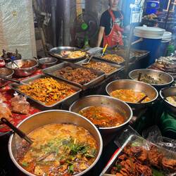 Visited Bang Nam Phueng, a less-touristy area in Bangkok. Getting there was an adventure: took the metro, then motorbike taxis (one per person), followed by a ferry across the Chao Phraya River.Læs mere