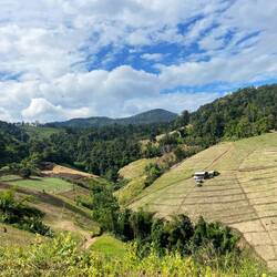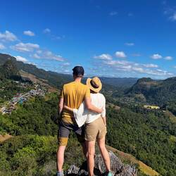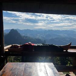 The views in Ban Ja Bo were absolutely breathtaking - endless green mountains stretching to the horizon. We spent the night in a simple bamboo hut perched right at the edge of a cliff. Waking up to aLæs mere