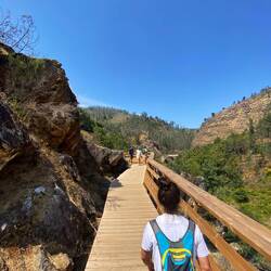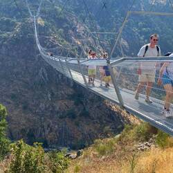 Die 175m hohe 515 Arouca ist mit 516m die längste Fußgängerbrücke der Welt. Danach folgen die Passadiços do Paiva entlang am Paiva Fluss.