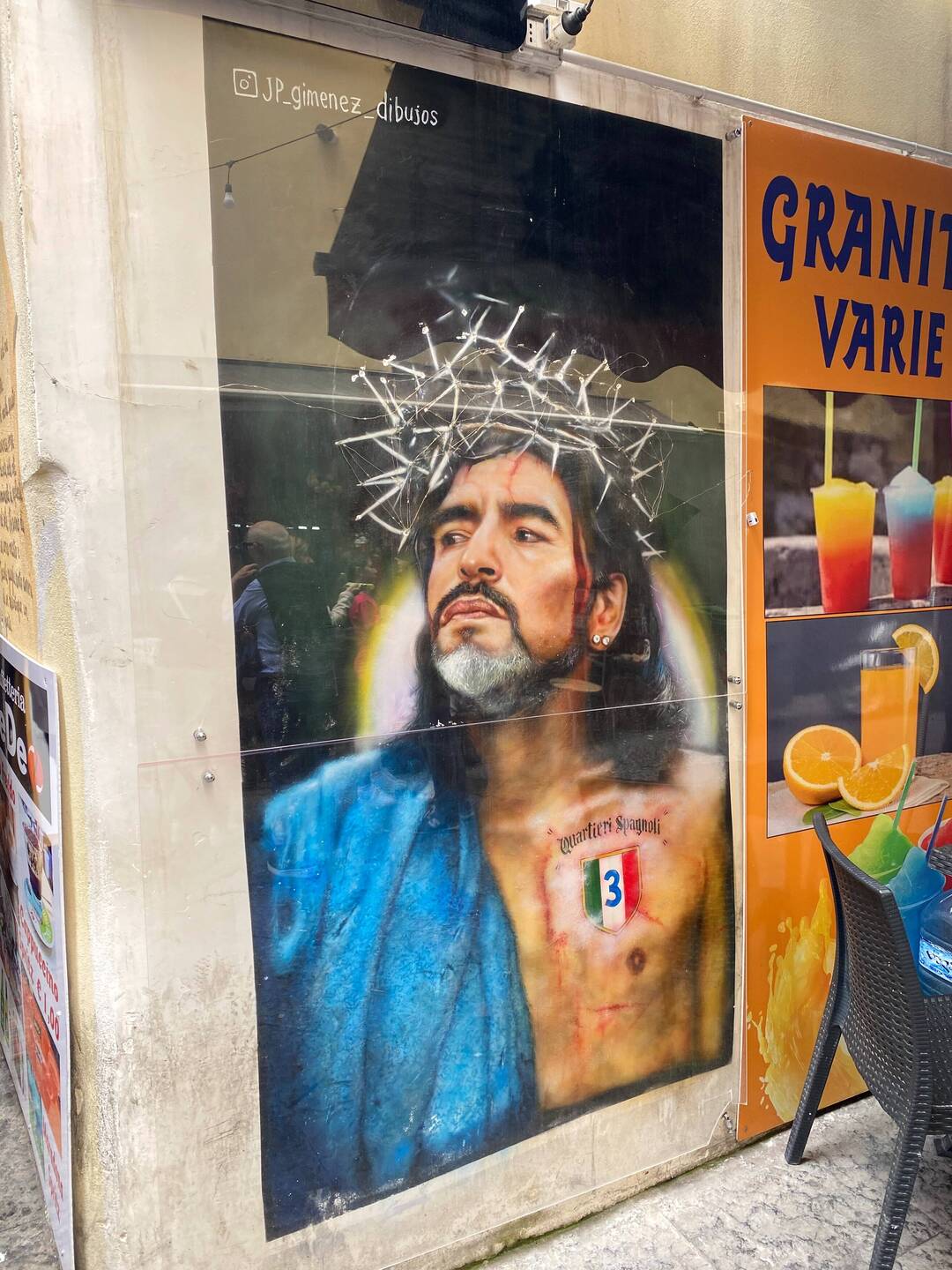 Diego Armando Maradonna! Er ist immer noch präsent, er ist eine Gottheit in Neapel!
