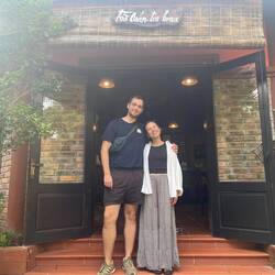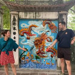 Nach einer durchgerüttelten Nacht im Nachzug sind wir am Morgen in Hué angekommen. Hier haben wir unser bisher schönstes Hotel. Für nur 12,50 € pro Person die Nacht mit Frühstück, einem Pool auf der Dachterasse und einem ganz tollen Zimmer mit Balkon und Blick auf die Stadt. Der Wahnsinn. In Hué merken wir, dass wir ziemlich erschöpft von den letzten zwei Reisewochen sind. Dementsprechend haben wir am Anreisetag lediglich eine Zitadelle besichtigt (bei über 30 Grad 🥵). Auf dem Weg dahin haben unglaublich süße Welpen gesehen. Das musste festgehalten werden. Den restlichen Tag haben wir am Pool mit lesen verbracht. Meine Bonusschwester Lea hat vor 5 Jahren für ein Jahr in Hué in einem Projekt gearbeitet. Hier hat sie mit Menschen mit Behinderungen Räucherstäbchen hergestellt. Dank Lea hatten wir die Möglichkeit, am nächsten Tag ihr Projekt zu besuchen. Mit dem Moped sind wir also zum Projekt gefahren, was etwas außerhalb der Stadt liegt. Tillmann hat festgestellt, dass es mit dem Moped in der Stadt zu fahren noch mal was ganz anderes ist. Aber wir leben noch! Und wir haben eine ganz tolle Führung durch das Projekt bekommen und durften die Bewohner kennenlernen und sehen wir dort zusammen gearbeitet wird. Wir sind mal wieder sehr begeistert von der Freundlichkeit der Menschen. Zudem beeindruckt es uns sehr, was für eine tolle Möglichkeit die Bewohner dort haben sinnvollen Aufgaben nachzugehen. Anschließend sind wir noch in einen kleinen Wald in der Nähe dort gedüst und genießen den Ausblick und die Ruhe. Praktischerweise hat uns Leachen mit einigen Tipps für Cafés und Restaurants versorgt, die wir auch fast alle ausprobiert haben. Das war toll. Wir sind sehr dankbar, dass wir in Hué in Leas und Simons (ihr damaliger mitfreiwilliger und Freund) leben eintauchen konnten.Leer más