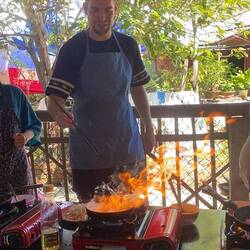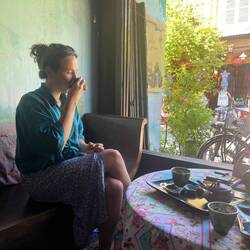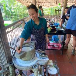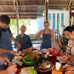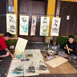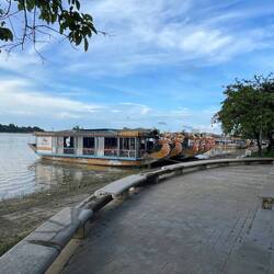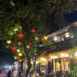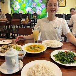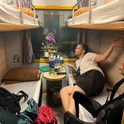 Die Zeit rennt und wir fahren für nur 24 h nach Hoi an. Die Anreise von Hué ist zum Glück relativ kurz mit nur 3 h Stunden. Nachdem wir unsere Sachen im Hotel abgestellt haben, machen wir uns auf den Weg in die wunderschöne Altstadt. Wir sind total geflasht von der Altstadt, die noch sehr gut erhalten ist und uns durch viele kleine Gässchen führt. Wir setzen uns in ein kleines Tea Café. Es Stellt sich heraus, dass dies ein ganz besonderes Café ist. Es handelt sich um ein Schweige-Café. Während der Zeit in dem Café soll nicht geredet werden und wenn, nur in einem Flüsterton. Wir haben verschiedene beschriftete Holzklötze mit Aufforderungen wie Thank you, Bill, questions usw. vor uns liegen und können so unsere wünsche äußern. Unsere Bestellung können wir auf einem Zettel ankreuzen. Wir bekommen zuerst drei kleine Kännchen mit einer sirupähnlichen Flüssigkeit und sind neugierig auf diese neue Art von Tee. Wir mixen die drei Sirup in unsere Tasse und finden den intensiven, dickflüssigen Geschmack, etwas befremdlich. 2 Minuten später kommt allerdings ein Tablett mit zwei Teekannen. Nun leuchtet uns ein, dass die Sirup zum verfeinern des Tees angedacht waren und nicht zum pur trinken. Unglaublich peinlich berührt bedanken wir uns und mixen den Tee nun mit unserer Sirup Konstellation. Da wir unglaublich früh aufstehen mussten, sind wir danach nochmal zurück zum Hotel, lagen am pool und ich hab noch etwas geschlafen. Als wir abends erneut in die Altstadt gegangen sind, ist diese von vielen bunten Lampions beleuchtet, auf dem Wasser kann man Teelichter in kleinen bunten Bötchen mit den eigenen Wünschen wahr werden lassen, in dem die teelichter dem Fluss übergeben werden. Wir essen gut und günstig zum Abendbrot und fallen dann müde ins Bett. Nach dem Frühstück am nächsten Morgen fahren wir etwas außerhalb der Stadt zu einem Kochkurs und in einer kleinen Gruppe kochen wir hier typisch vietnamesisches Essen. Dazu gehören ein vietnamesischer Pancake, Frühlingsrollen, Papaya Salat und natürlich Reis. Es hat super viel Spaß gemacht und wir haben das Essen natürlich sehr genossen. Nachmittags sind wir nochmal in die Altstadt gegangen und haben ein bisschen Sightseeing gemacht. Unter anderem waren wir noch in einem kleinen Theaterstück und dann ging’s auch schon Richtung Nachtzug, mit dem wir dann jetzt 17,5 Stunden nach Hanoi unterwegs sind.Leer más