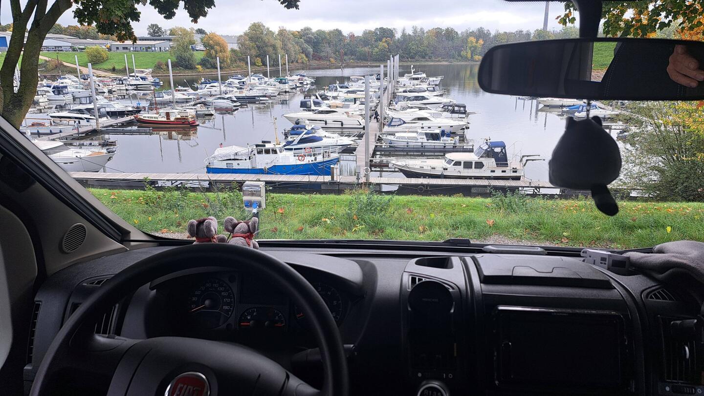 Heute morgen haben wir die Niederlande verlassen. Und sind nach Emmerich am Rhein gefahren. Stellplatz mit direkten Blick auf den Jachthafen.