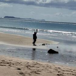 Wir sind von Paihia über die Whangarei Falls nach Orewa vor Auckland gefahren. Hier haben wir auf einem Platz am Strand übernachtet. In Orewa haben wir ein Geschäft gefunden, das südafrikanische Boreworst verkauft. Bei der afrikanischen Wurst haben wir zugeschlagen, denn die neuseeländische Wurst hat uns bitter enttäuscht. Die Boreworst grillen wir am Abend und sie schmeckt wie in Südafrika. Von Orewa sind wir über Auckland auf die Coromandel Halbinsel nach Hot Water Beach gefahren. In Auckland waren wir noch im Depot der Wohnmobilvermietung, um unseren Kühlschrank, der immer noch nur auf Gas läuft, reparieren zu lassen. Das hätten wir uns sparen können. Der "mechanic" wusste nicht richtig Bescheid und meinte, er müsse den ganzen Kühlschrank tauschen. Und das würde natürlich ein paar Tage brauchen. Dafür haben wir nicht die Geduld. Also geht es weiter. Wir fahren auf die Coromandel Halbinsel. Solche Straßen haben wir bisher nicht erlebt. Extrem kurvig und steil hinauf und steil wieder runter. Manchmal fahren wir noch 25 km/h. Es zieht sich. Dafür entschädigt aber immer wieder der Blick auf superschöne grüne Täler. Wir sind erleichtert als wir gegen 15 Uhr nach ca. vier Stunden Fahrt für 213 km in Hot Water Beach ankommen. Wir gehen noch zum Strand, der 10 Minuten entfernt ist. In Hotwater Beach sehen wir uns beim nächsten Niedrigwasser die heißen Quellen am Strand an. Das ist ein interessantes Abenteuer. Bei Niedrigwasser blubbern am dann freiliegenden Strand kleine Wasserquellen. Dieses Wasser ist kochend heiß. Man muss echt aufpassen, wo man hintritt. Unter den Füßen kochend heiß und um die Knöcheln spülen die kalten Wellen des Pazifiks. Der ganz Strand dampft und die Leute graben sich Löcher, in denen sich das heiße Wasser sammelt. Sie achten aber auch darauf, dass es einen Zulauf von Meereswasser gibt, sonst wird der Hintern gekocht. Wir haben dann Hahei besucht und von weitem die Cathedral Cove gesehen. Im Moment ist der Fußweg zur Cathedral Cove wegen Sturmschäden gesperrt. In Whitianga haben wir unser Vorräte an Lebensmitteln und Diesel aufgefrischt. Am Campingplatz habe ich mich in den hot Spa des Campingplatzes gesetzt und eine Stunde mit Neuseeländern und Australiern die Situation in Deutschland erörtert. Sie sind echt besorgt, dass Deutschland im Niedergang begriffen ist und wollten von mir die Gründe wissen. Ich habe ihnen das nunmehr gescheiterte deutsche Geschäftsmodell (billige Energie aus Russland und den Export stimulierende Globalisierung) in Kombination mit einer völlig unfähigen Regierung erläutert, aber auch Optimismus ausgestrahlt. Deutschland hat seine Stärken und viele Weltmarktführer in der Industrie und mit veränderten Rahmenbedingungen läuft Deutschland auch wieder.Read more