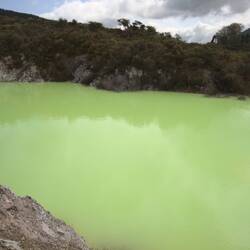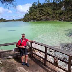 Am nächsten Tag besuchen wir das Maori-Dorf Whakarewarewa. Dort nehmen wir an einer Führung durch das ehem. Maoridorf teil. Eine stark tätowierte Maori führt uns durch das Dorf. Wir essen gekochten Mais aus dem heißen Quellwasser. Das Wasser ist 98 ° C heiß. Wir sehen auch Geysire. Einer stößt gerade aus. Dann besuchen wir noch den Thermalpark Wai-O-Tapu. Dort sehen wir wieder zischenden Dampf, blubbernden Schlamm und Teiche mit ganz exotischer Farbe. Ich trage seit einigen Tagen wieder Shorts. Fast alle Männer in Neuseeland tragen Shorts. Hier im Wald rächt sich das bitter. Nach kurzer Zeit sind meine Beine voller Insekten. Sie stechen nicht aber sie beißen. Ich schlage hektisch nach den winzigen schwarzen Punkten. Ich werde meine Beine am Abend im Hot pool pflegen müssen.Read more