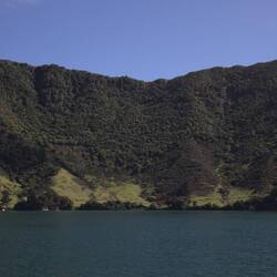 Wir sind von Kaikoura wieder entlang der phantastischen Küstenstraße in den Norden nach Havelock in die Marlborough Sounds gefahren. Die Marlborough Sounds sind ein ausgedehntes Netzwerk von Meeresarmen im Norden der Südinsel von Neuseeland. Ganz viele Fjorde und dichter, dichter Wald bis zum Wasser runter. Wenig Besiedlung und schwer zu bereisen. Deshalb haben wir am Freitag bei bestem Wetter einen ganztägigen Ausflug mit dem Postschiff in die Sounds gemacht. Das Postschiff fährt eine Reihe von Lodges, Muschelfarmen, Forschungsstationen und Siedlungspunkten an, die nur mit dem Schiff zu erreichen sind. Es gibt kaum Straßen in die Sounds hinaus. Von Havelock aus werden diese entlegenen Orte per Postschiff mit Post, Lebensmitteln, Kraftstoff und Kurzweil versorgt. Das einmal pro Woche ankommende Postschiff ist für Mensch und Tier in den Sounds eine willkommene Abwechslung. Daneben verkaufen sie ein paar Fahrkarten (eben auch für Touristen), um zusätzliche Einnahmen für das Postschiff zu generieren. Kaffee und Tee gibt es umsonst, sein Lunch muss man selbst mitbringen. Beim Warten auf die Abfahrt unterhalten wir uns mit einem amerikanischen Ehepaar in unserem Alter aus Austin, Texas über die Enkel, die sie und wir sehr vermissen. Amerikaner sind immer sehr schnell in Kontakt, wollen wissen wie lange wir verheiratet sind und wann unser Hochzeitstag ist. Man kommt schnell mit ihnen ins Gespräch und sie erzählen uns von ihrem Haitauchen auf Fidschi. Um 10 Uhr vormittags fährt das Schiff pünktlich ab , wir haben einen Außenplatz auf dem Oberdeck ergattert und es ist Hochwasser und schönes Wetter. Wir schieben uns langsam eine schier endlose Tonnenstraße entlang. Es geht bis Tonne 29 im Hafen; für den Insider. Nach Tonne 1 beschleunigt das Schiff auf 20 Knoten und wir sitzen trotz Sonnenschein bald alleine auf dem Aussichtsdeck. Die strahlende Sonne kann uns bei 20 kn Fahrtwind auch nicht mehr warmhalten. Aber wir haben gute Jacken und sehen das auch persönlich, nachdem wir einen Oberdeckplatz erkämpft haben. Trotzdem sehnen wir den ersten Poststopp herbei, der aber auf sich warten lässt. Der erste Stopp ist dann eine große Schule verspielter Delfine. Sie lieben es, mit dem Boot um die Wette zu schwimmen. Das Wasser ist tiefblau und die Delfine schießen übermütig durcheinander. Hier kommt meine EOS7 noch einmal zur Geltung. Mit dem Handy kann man diese Tiere im Wasser nicht fotografieren. Sie sind zu schnell. Das Handy fokussiert viel zu langsam. Die EOS innerhalb von wenigen Millisekunden und mir gelingen Bilder von aus dem Wasser springenden Delfinen. Die Landschaft ist unglaublich. Endlose Fjorde und Buchten, tiefblaues Wasser. Das Land ist ganz dicht bewaldet. Hier geht man sicher nicht zu Fuß durch den Wald. Beim ersten Poststopp werden wir schon erwartet. Menschen kommen oft mit einem Haustier zum Postboot; hier ein großer Schäferhund, der aufgeregt bellt und mit dem Schwanz wedelt. Er erhält vom Postschiffer einen Hundekeks und wedelt vor Aufregung fast seinen Menschen mit dem Schwanz ins Wasser. Auch bei den anderen Poststopps kommt immer ein Haustier mit zum Boot, mal ein Hausschwein dann ein Lamm. Immer wird ein ausgedehntes Schwätzchen gehalten. Das Postboot kommt einmal pro Woche und natürlich freuen sich Mensch und Tier über die Unterhaltung. Ist auch eine Haltung , hier draußen zu leben. Die Abgeschiedenheit muss man aushalten können. Wir kommen zu Lodges mit Touristenunterkünften aber auch zu Farmen oder Wohnhäusern für die Bewirtschafter der Aquakulturen für Muscheln oder Lachs. Manch einer der angefahrenen Außenposten ist ziemlich abgerissen. Gegen Mittag steuert das Boot einen Strand an und der Skipper fährt mit dem Boot vorsichtig bis auf den Strand. Eine Gangway erlaubt es, den Strand zu betreten. Hier ist unsere Lunchpause. Ein junges Paar wickelt ein Baby unter den Bäumen am Ufer. Es ist warm und wir genießen unser Pausenbrot und die Tatsache, dass wir nicht im Fahrwind sitzen. Nach der Mittagspause werden weitere Stationen angefahren.