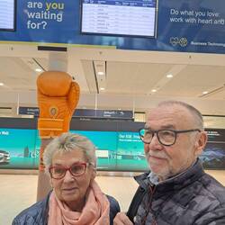Zum Glück hat uns Daniela bei diesem Winterwetter zum Flughafen gefahren. Danke.