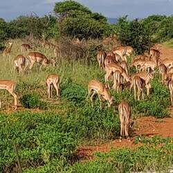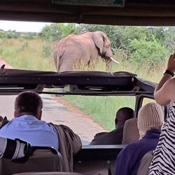 Nach dem Morgenkaffee sind wir mit unserem Gepäck zum Auto gebracht worden und haben den Park am westlichen Gate verlassen und sind dabei noch einmal vielen Tieren begegenet.