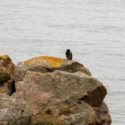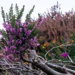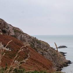 Bei gutem Wetter hat man einen schönen Ausblick auf Berge und die typischen Schafweiden mit Steinmauern.