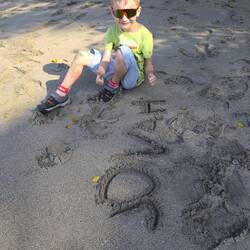 Jonah wollte am liebsten den ganzen Strand auf buddeln... mit Mutti!