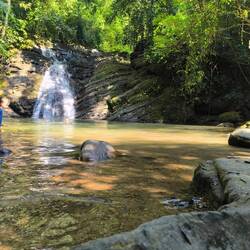 Einen kleinen Abstecher zu einem von den Einheimischen gerne genutzten Wasserfall haben wir dann doch gemacht und es war, im Gegensatz zu allem anderen hier recht kaltes Wasser! Sehr angenehm...